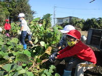 昨日は、サツマのツルを1・2年生全員で刈りました。大変な作業でしたが、みんなで協力して行いました。ただ単に収穫するのではなく、収穫までの過程を経験することが大切だと思いました。