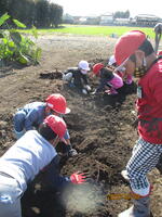大きく育ったサツマの芋を掘り出した児童は、満面の笑顔でサツマの芋を手にしていました。収穫したサツマの芋は、児童が家庭に持ち帰ります。焼き芋、天ぷら、大学芋にスイートポテト等、調理方法はたくさんありますが、是非、お子様と一緒に調理してみてはいかがでしょうか。