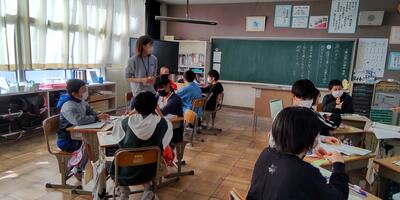 6年生は「国語」の授業です。「やまなし」の学習です。感想を伝え合っています。