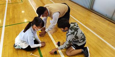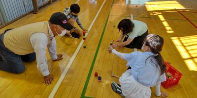 シニアクラブの方々をお招きし、3年生4年生が学級活動でふれあい学習を行いました。コマまわしやだるま落とし、輪投げや羽根つき、お手玉などを教えていただきながら、楽しく活動することができました。昔の遊びの楽しさを知ることができました。