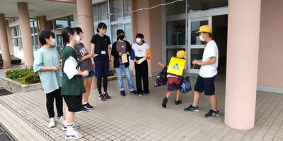 東西昇降口前では、6年生の「上高あいさつ隊」の皆さんが、登校を待ち受けています。「おはようございます」今週は「英語Week」でもありますので、「Good morning 」という声も飛び交っていました。