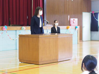 5時間目に昨年度末で転出された4名の先生方の離任式を行いました。自然に恵まれた環境と誰とでも仲良くできる上高根沢小学校の子どもたちの素晴らしさをお話してくださいました。子どもたちからは花束と心のこもった手紙をお送りしました。別れを惜しんで涙ぐむ子どもたちがたくさんいました。4名の先生方、大変お世話になりました。ありがとうございました。