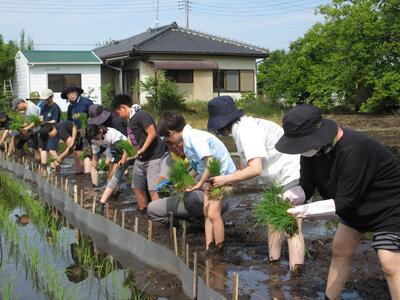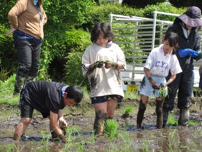 5年生が種をまいて大切に世話をしてきた苗が立派に育ち、いよいよ今日、田植えをしました。