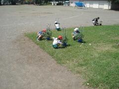 学校支援ボランティアに登録されている方に、休日を利用して校庭の芝刈りを行っていただきました。ボランティアに協力していただける方は、休日に限らず平日に作業をすることも可能ですので、お越しの際は、職員室に声をかけてくださるようお願いします。なお、休日に作業をする場合は、前日までに教頭に連絡くださるようお願いします。