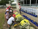 クリーングリーンタイムを利用して、ふれあい班ごとに各花壇に、サルビア、ブルーサルビア、メランピジュウムの苗を植えました。今回は、人権擁護委員会の「人権の花」運動事業の一環として行いました。この事業の目的は、花の育成や観察を児童が行うことで、「思いやりの心」と「かけがえのない命」を大切にする人権思想を育むことを目的とするとあります。「人権の花」贈呈式は、来週の27日(月)に行われます。この苗を大切に育てていきたいと思います。
