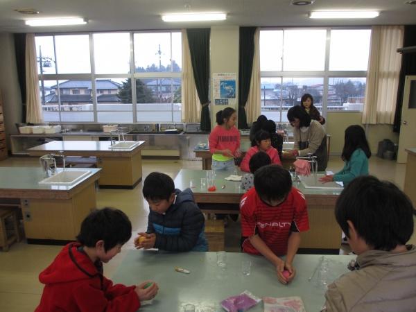 みんなが大好きな「スライム」を作りました。作ること以上に遊ぶことが楽しそうです。