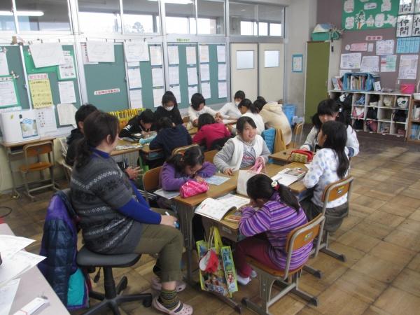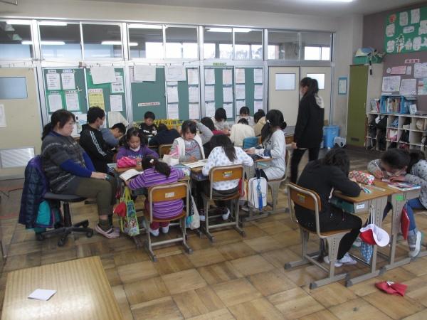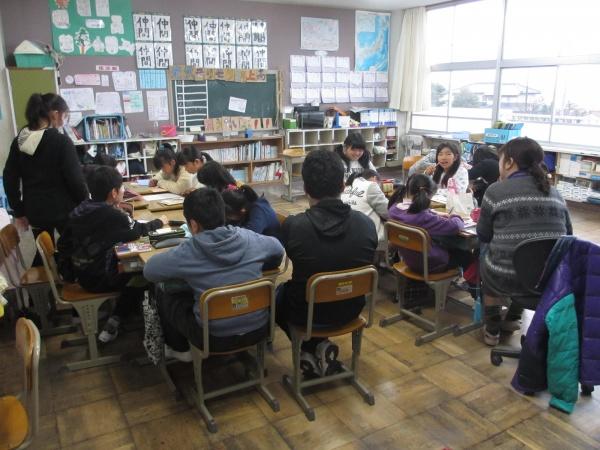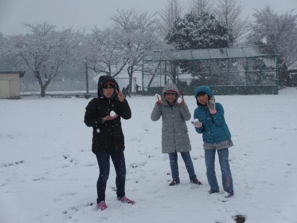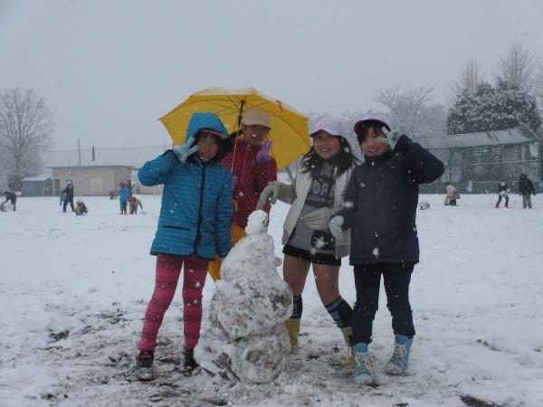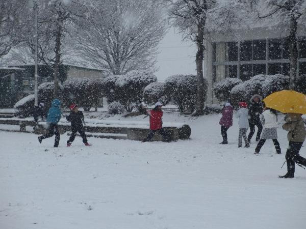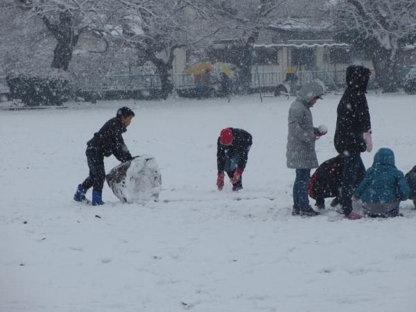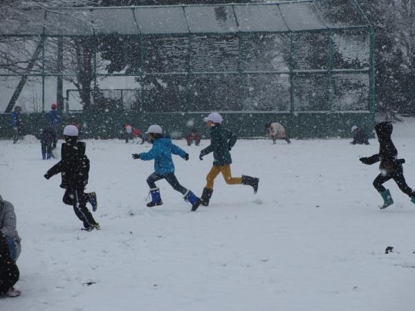 業間休みと昼休みには、外に出て、雪だるま作り、雪合戦、サッカーなどをして元気に遊んでいました。