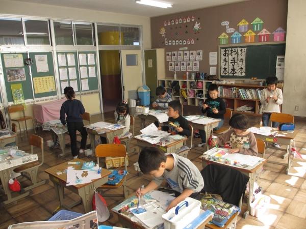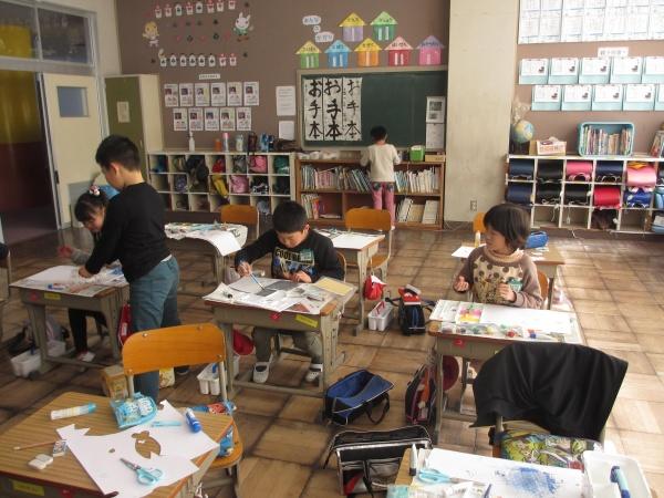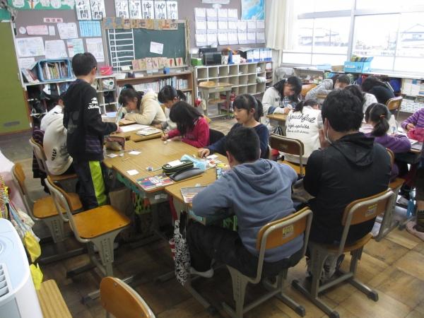 クラブ見学に来る3年生のために、カード作りをしました。大好きなキャラクターを黙々と描いています。