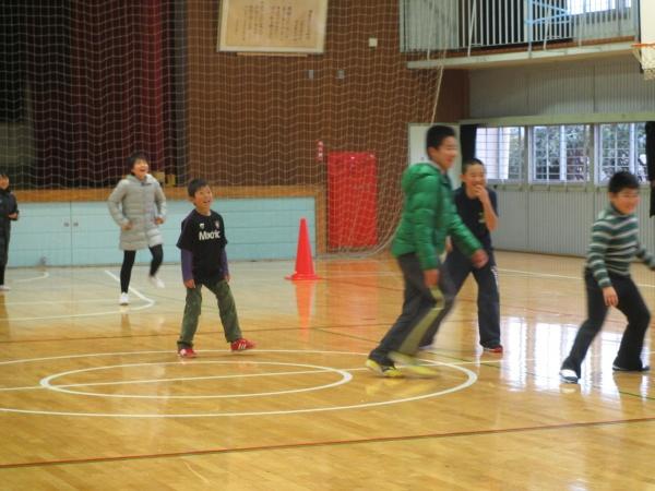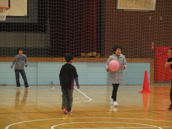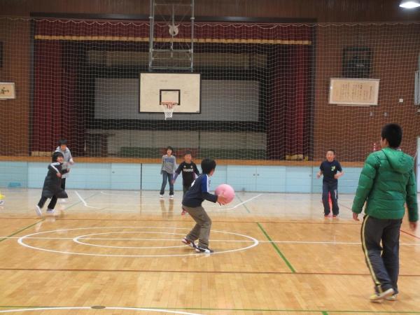 今日は雨天のため、体育館でドッジボールをしました。投げる方も逃げる方も必死です。