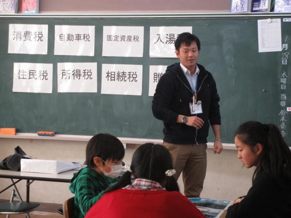 町の税務課の鈴木さんにゲストティーチャーとして来ていただき、税金の仕組みなどについて学びました。