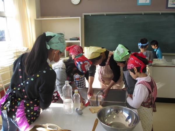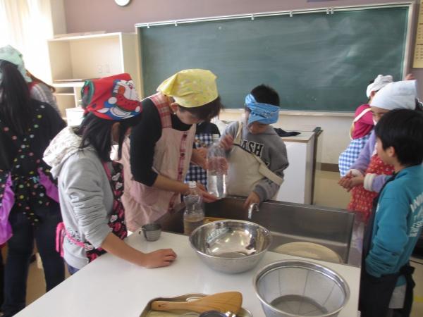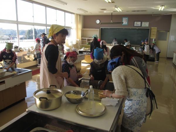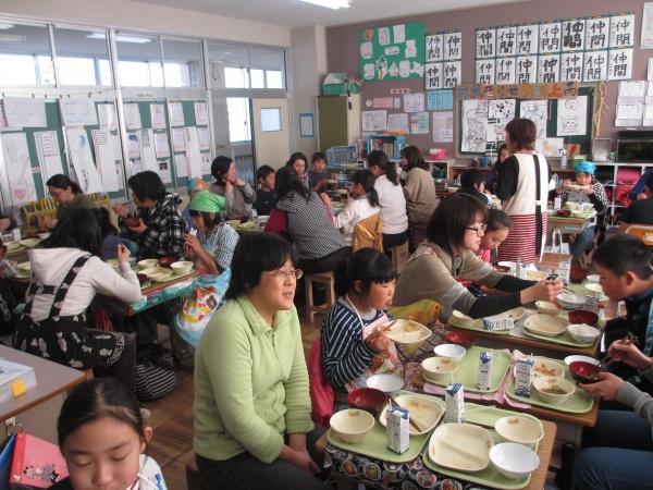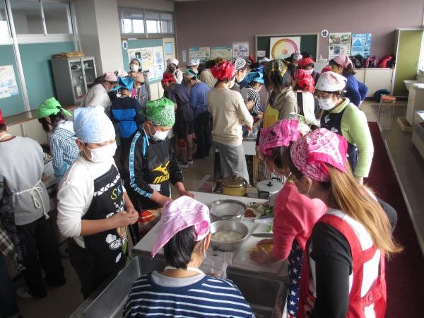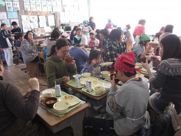 5年生が育て秋に収穫したお米「ゆうだい21」を炊き、お味噌汁を作りました。給食に合わせて、親子で一緒に食べました。