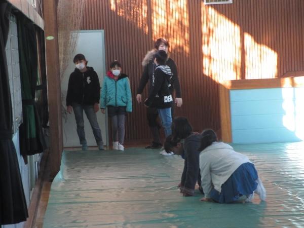 4・5年生が、卒業式の式場の床のシート清掃をしました。心を込めて、水ぞうきんでしっかりと拭いてくれました。気持ちいい環境で卒業式が迎えられます。