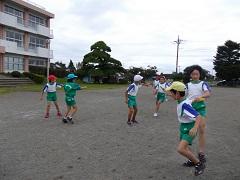 今日の運動会の練習は、全員リレーを行いました。1年生から6年生までの全児童を4チームに分け、バトンをつなぎます。練習とはいえ、本番さながらに白熱したレースになりました。
