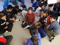 4年生は、「みんなにやさしい町づくり~福祉について考えてみた~」の題名で発表しました。グループに分かれ、点字・バリアフリー・手話にについて調べました。点字を打ったり、車いすに乗ったり、手話による歌や会話など実演を交えてわかりやすい発表でした。招待された3年生や保護者の方は貴重な体験ができました。