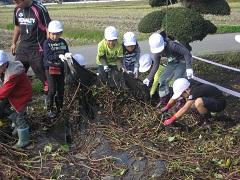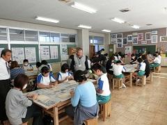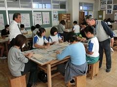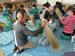 5年生が高齢者とのふれあい学習を行いました。高齢者に教わりながらわら細工に挑戦しました。子どもたちは、手際よく作業を行い、予定より早く完成しました。