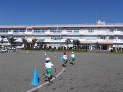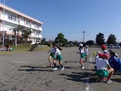 今日のスポーツタイムは、久しぶりに全員リレーを行いました。子どもたちは、青空の下、いい汗をかきました。
