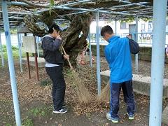 秋も深まり、校庭の木々もすっかり紅葉し、きれいな色をしています。しかし、この季節に大変な作業は、落ち葉の始末です。今年も、6年生がボランティアで毎朝落ち葉掃きをしています。まだまだ落ち葉はあるので、当分ボランティアは続きそうです。