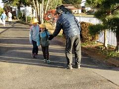 12月4日(金)から10日(木)の人権週間に合わせてあいさつ運動を実施しています。今朝は地域の方が東門であいさつとともにハイタッチも行ってくれました。