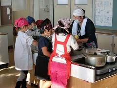 1・2年生が地域の方とのふれあい学習を行いました。まず、米粉で繭玉をつくりました。その後、エゴノキの枝に刺したり、ゆでて食べたりしました。慣れない作業でしたが、みんなで協力して完成させることができました。