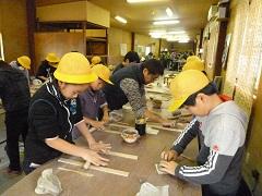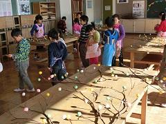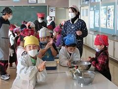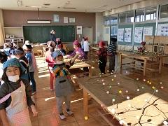 1・2年生が地域の方とのふれあい学習を行いました。まず、米粉で繭玉をつくりました。その後、エゴノキの枝に刺したり、ゆでて食べたりしました。慣れない作業でしたが、みんなで協力して完成させることができました。