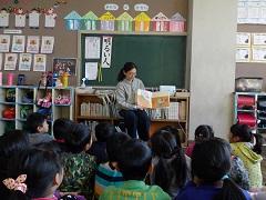 今週の朝の活動は、読書です。今日は、図書ボランティアによる読み語りを行いました。