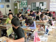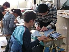 6年生の図工の授業で、日本版画院同人・版画白峰会会員の髙倉浩三先生と保護者ボランティアの森田さんの指導を受けました。子どもたちは、専門的な指導を受けることができ、作品の仕上がりが楽しみです。