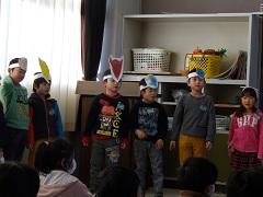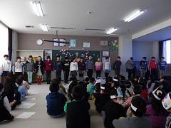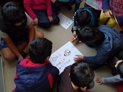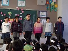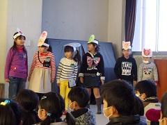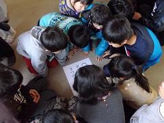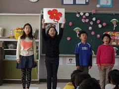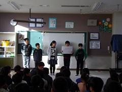 今朝の朝の活動は、児童集会を行いました。今回は、保健給食委員会の企画です。内容は、かぜ予防に関してです。まず、かぜ予防のポイントの説明があり、その後クイズが出題されました。最後に、ふれあい班ごとにかるたの最初の文字を考えました。わかりやすい発表で、かぜ予防に対する子どもたちの意識が高まりました。