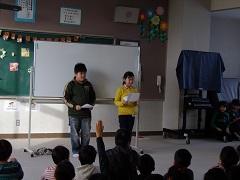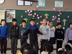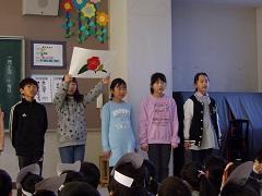 今朝の朝の活動は、音読・朗読発表会を行いました。詩の暗唱など、動作も取り入れ、趣向を凝らした発表を行いました。学年が上がるにつれて、内容も高度になり、すばらしい発表でした。学校公開日なので、早い時間にもかかわらず、50名を超える見学者から、大きな拍手をいただきました。