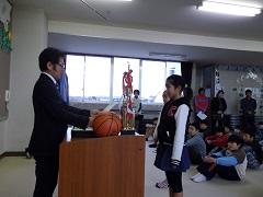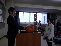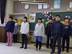 23日(火)の卒業式練習の前に表彰を行いました。今回は、町書き初め席書大会、県フィギュアスケート選手権大会、ファイナルカップミニバスケットボール大会で優秀な成績を収めた児童を表彰しました。おめでとうございます。