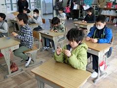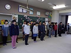 いよいよ今日から卒業式の練習が始まりました。今日はふれあい室で、礼のしかたとお別れのことばの間の取り方を中心に練習しました。子どもたちは真剣に取り組んでいました。