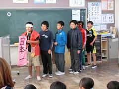 町の中学校のALT3人の協力を得て、6年生の授業で国際交流集会を実施しました。ALTの自己紹介の後、ゲームなどいろいろな活動を行いました。子どもたちは、しっかり英語を聞き取り、積極的にコミュニケーションをとっていました。給食も一緒に食べ、さらに交流を深めました。