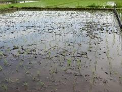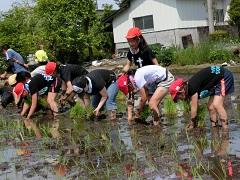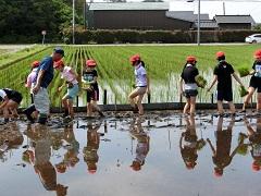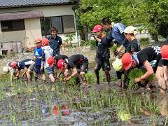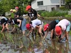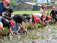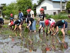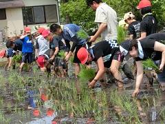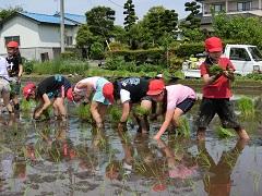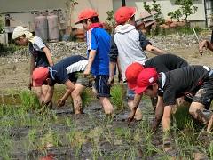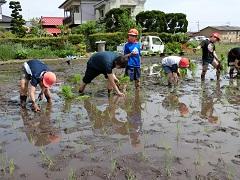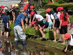 環境ボランティアの赤羽さんの指導の下、田植えを行いました。好天に恵まれ、少し暑いくらいでしたが、作業は順調に進み、上手に植えることができました。例年のように、終了する頃にはほとんどの児童が泥だらけになっていました。また、協力してくれた保護者の皆さまありがとうございました。