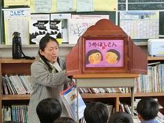 今週の朝の活動は読書週間です。今日はボランティアの方々の協力により、読み語りが行われました。今日の本は、1・2年生は「なかないで なかないで」「どうぶつ しんちょうそくてい」、3・4年生は「『紙芝居』 うめぼしさん」「光の旅 かげの旅」、5・6年生は「ゆけ! ウチロボ」「ツバメのたび 5000キロのかなたから」でした。子どもたちは、食い入るように聞いていました