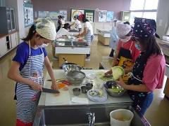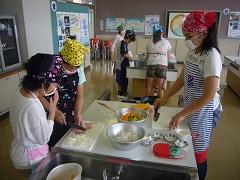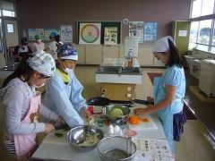 6年生が調理実習で野菜の彩り炒めとスクランブルエッグを作りました。班で協力して手際よく調理ができました。