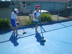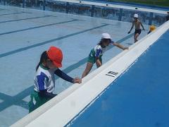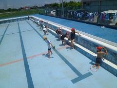10日(金)にプール清掃を行いました。まず、3・4校時に3・4年生がプールサイドを中心に清掃しました。暑い中、子どもたちは一生懸命に作業しました。
