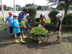 ふれあい花壇の草がかなりのびてしまったので、12日(月)の清掃の時間に除草をしました。子どもたちのパワーはすごいものがあり、あっという間にきれいになりました。