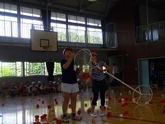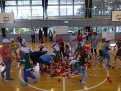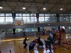 20日(木)のふれあいタイムはふれあい班対抗まりいれを行いました。熱戦の末、13こ入れた2班が第1位になりました。企画・運営をしてくれた6年生のみなさん、お疲れ様でした。