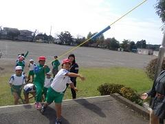 今日のスポーツタイムは、投の運動として「バトンスロー」を行いました。1・2年生が校外学習、5年生が親子ふれあい活動のため不参加でしたが、3・4・6年生でがんばりました。