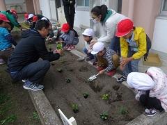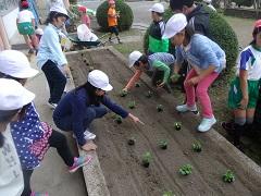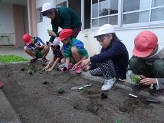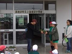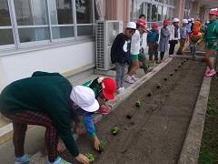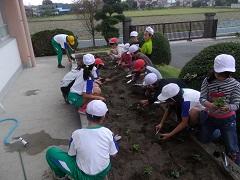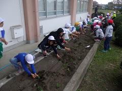 昼休みにふれあい花壇にノースポール・キンギョソウ・パンジー・ビオラの苗を植えました。この苗は、高根沢在住で本校卒業生の中山さまのご尽力により、花と緑の農芸財団が実施している「花の輪運動」に当選し、届いたものです。贈呈式では、お忙しい中、来校してくれた中山さまからお話をいただき、代表児童がお礼のことばを述べました。きれいな花が咲くのが今から楽しみです。ありがとうございました。