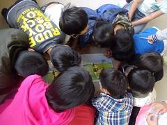 今朝の朝の活動は児童集会でした。今回の担当は、図書委員会です。自己紹介の後、各学年の多読賞児童の表彰を行いました。次に、ふれあい班ごとに分かれて、「バムとケロのそらのたび」の一場面のイラストの間違い探しを行いました。間違いが六つありましたが、二つの班が全部見つかりました。「読書の秋」です。子どもたちには、一冊でも多くの本を読んでほしいです。