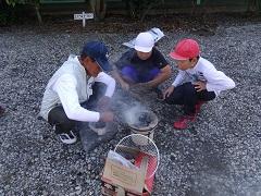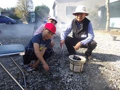 4年生が地域の方とのふれあい学習を行いました。最初に、校庭で輪投げとグランドゴルフを一緒に楽しみました。次に、七輪でのもち焼きに挑戦しました。火起こしには苦労しましたが、地域の方の助けにより、何とか焼くことができました。いろいろな話をしてふれあいながら食べたもちの味は格別でした。