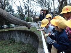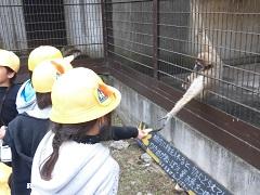 午後になると小雨がぱらついてきましたが、動物とふれあいました。えさやりは、