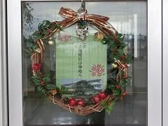 今日は、セレクト給食です。子どもたちは、チョコケーキ・おこめケーキ・グレープゼリーから一品選びました。どれもおいしそうです。また、玄関には今年も有本労務主事手作りのクリスマスリースを飾っています。