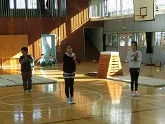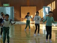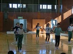 表現力養成講座発表会を行いました。3~6年生が体育・音楽・図工・国語の4つのチーム分かれ、それぞれ自分たちのアイディアを活かして、表現する力を身につけた成果を発表しました。体育チームは、リズム縄跳び・ダンス・シンクロ体操を音楽に乗って発表しました。そのリズム感のよさと技の素晴らしさに拍手喝采でした。なお、全体の司会進行は5年生が担当しました。