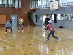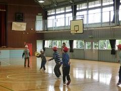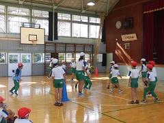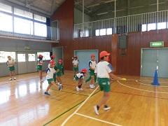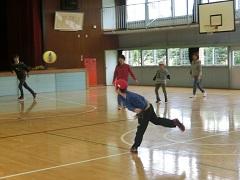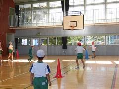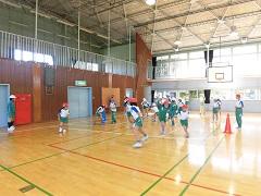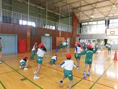 今日のスポーツタイムはふれあい班対抗のドッヂビーを体育館で行いました。とても楽しく、仲良くできました。