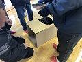 今回の訓練では、段ボールを利用した簡易トイレ、簡易ベットの組み立てをメインにして行いました。各地区毎に簡易トイレ、ベットを作りました。参加した地域住民の方々は、真剣な表情で取り組んでいました。