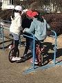 児童も、業間や昼休みは、校庭で元気いっぱいに友達と楽しく遊んでいます。3年生児童は一輪車乗りに挑戦中です。