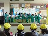 1・2年生の劇を見た後、校庭で全校児童と一緒に折りかえしリレーをしました。