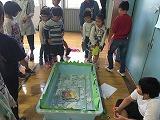 1年生にプレゼントを渡した後、ふれあい班(1年生から6年生までの縦割り班)に別れ、魚釣りや的当てなどのゲームを行いました。