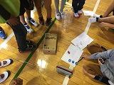 今回は、ふれあい班ごとに協力して集めたアルミ缶をつぶし、大きな袋に入れる作業をしました。